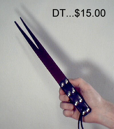 DT DEVIL'S TONGUE, 1" wide forked leather strap, burgundy with black handle