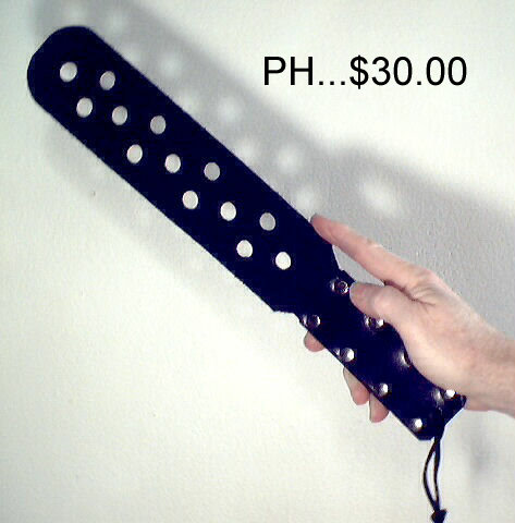PH SPENCER STYLE PADDLE, 14 3/4" black latigo paddle with holes for added sting