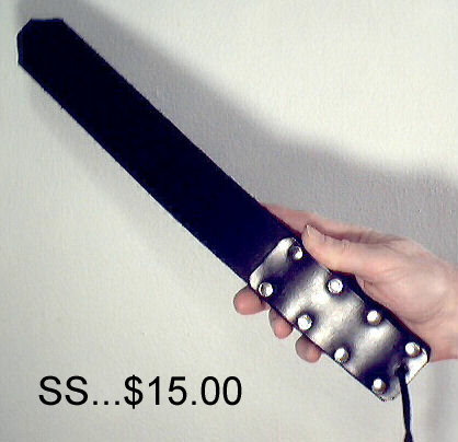 on the other; 4" X 5 1/2" spanking surface, "D" ring